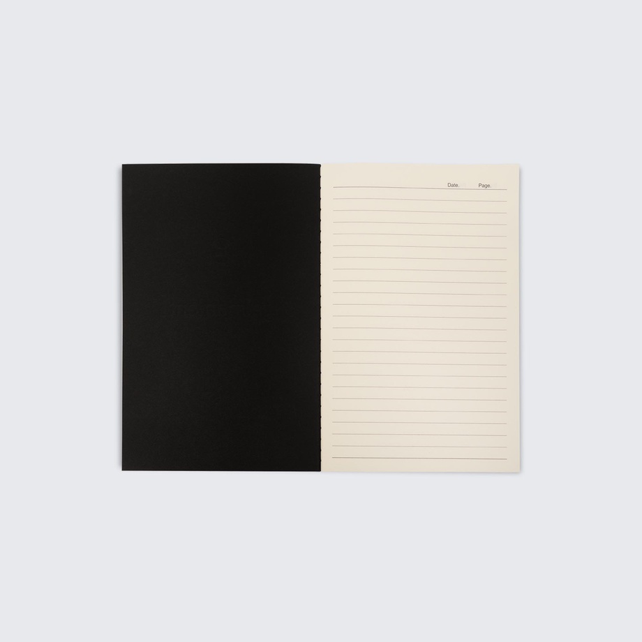 Keep your thoughts organized with a classic lined notebook. Available in light pink or black, these 30-page-long booklets are bound together with thread for a simple yet tasteful look.