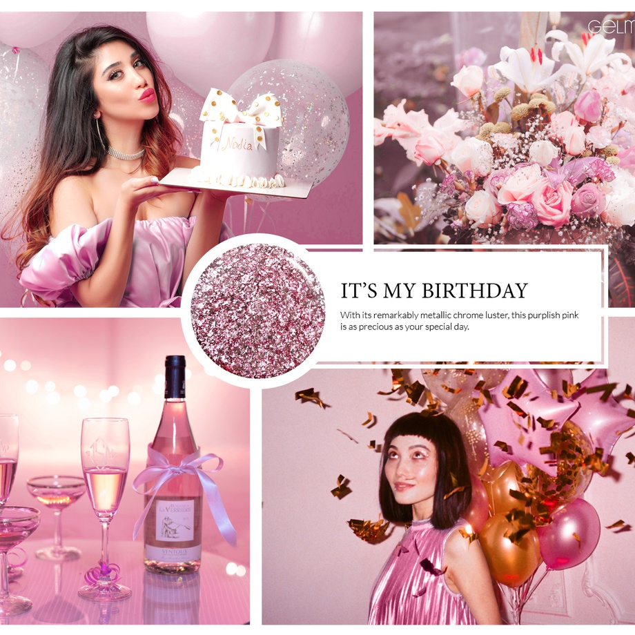 Silver rose. Metallic foil sparkle. Opaque. Cool undertone.